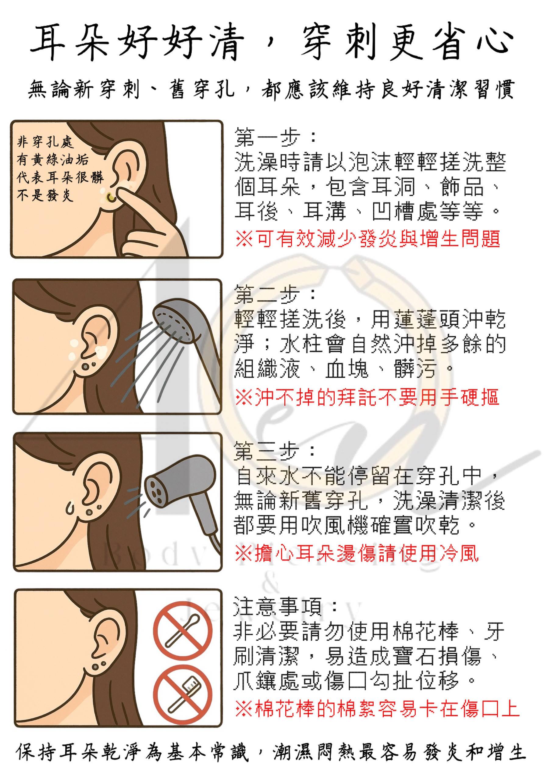 工具皆會以美國專業穿刺品牌清潔劑消毒殺菌,